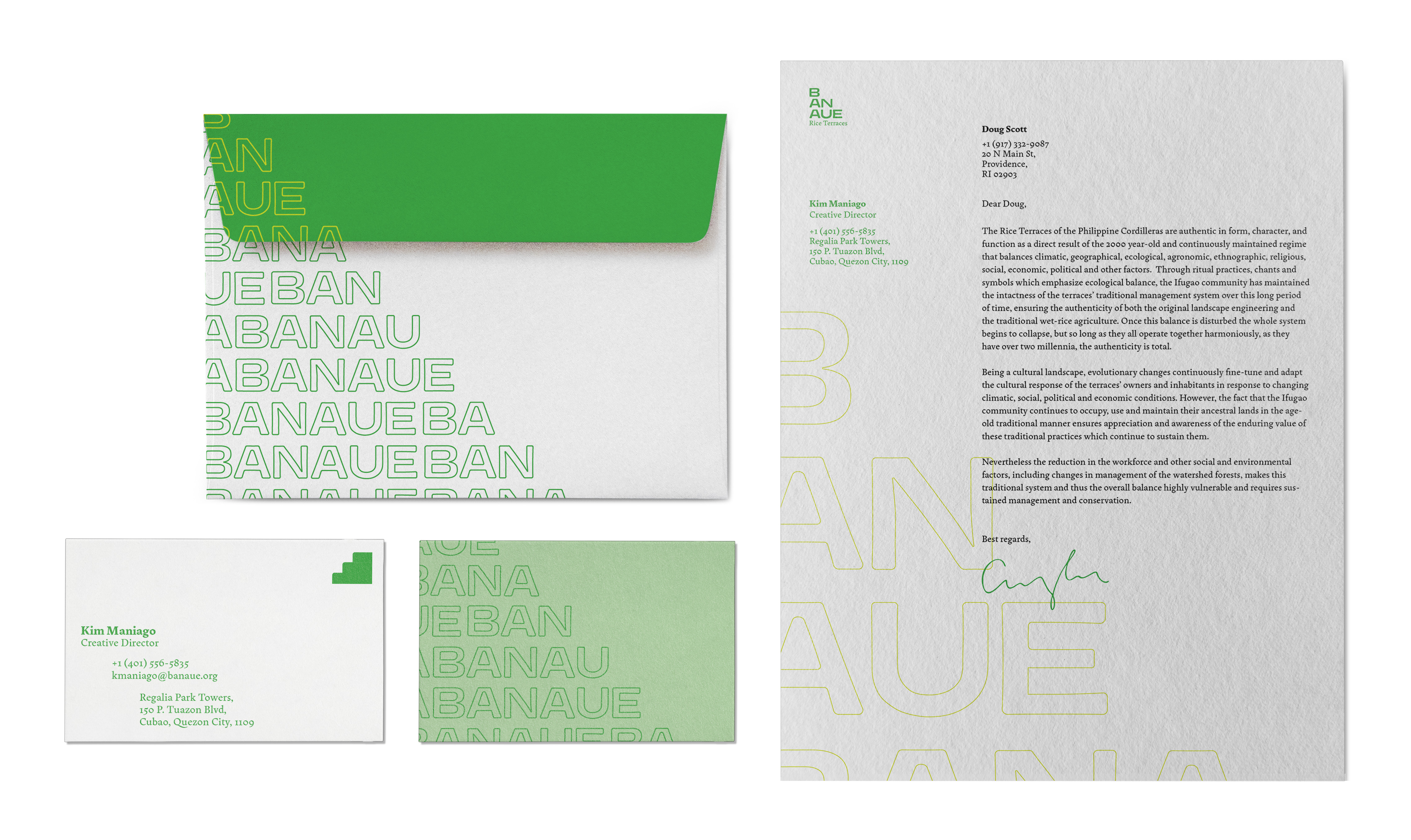 Speculative brand identity for a UNESCO World Heritage Site, the Banaue Rice Terraces of the Philippines.