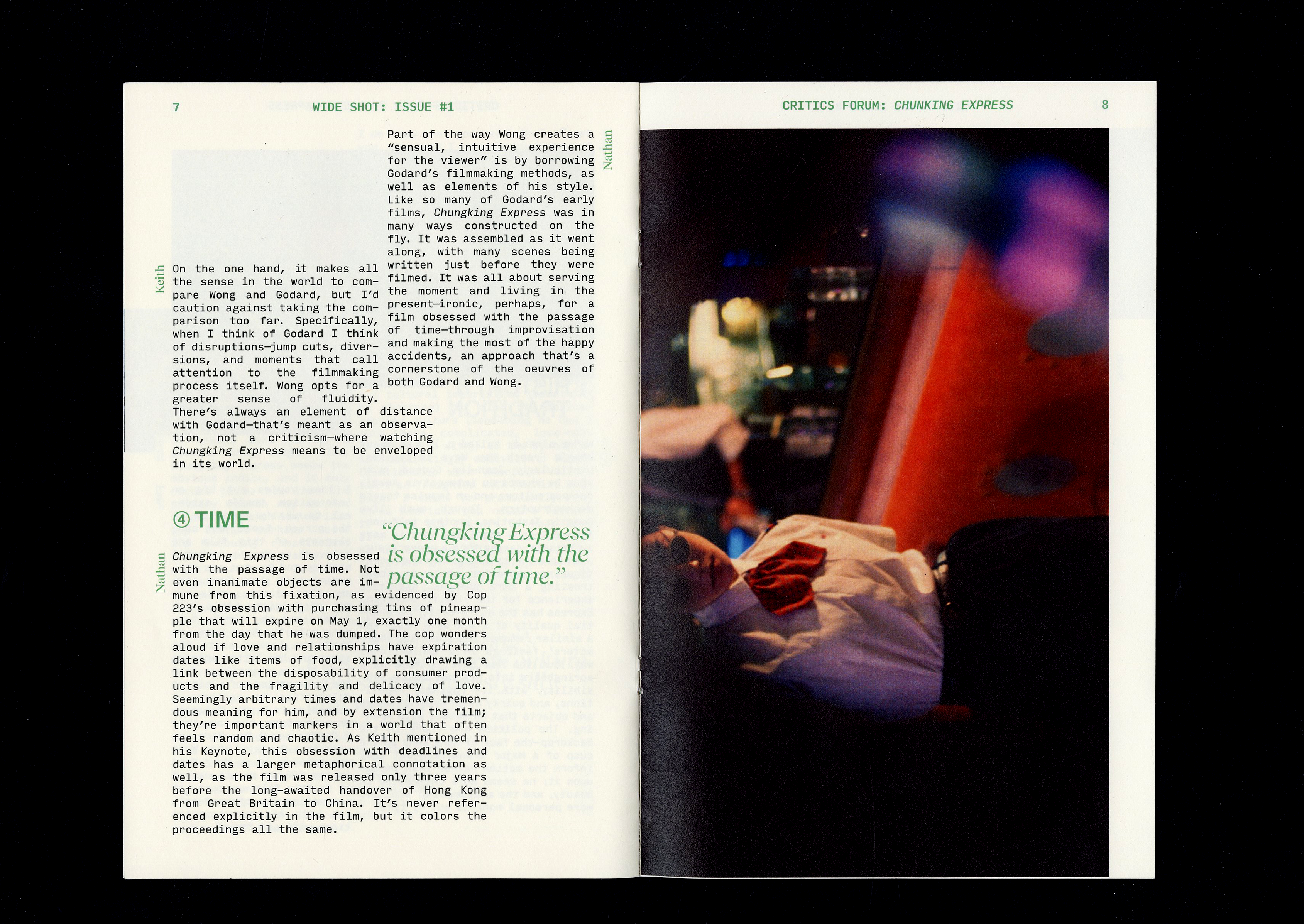 Wide Shot is a speculative magazine emerging from an existing article taken form The Dissolve, a discontinued film review and commentary website. The article was reimagined and typeset as a print publication for Grad Type Studio 2.